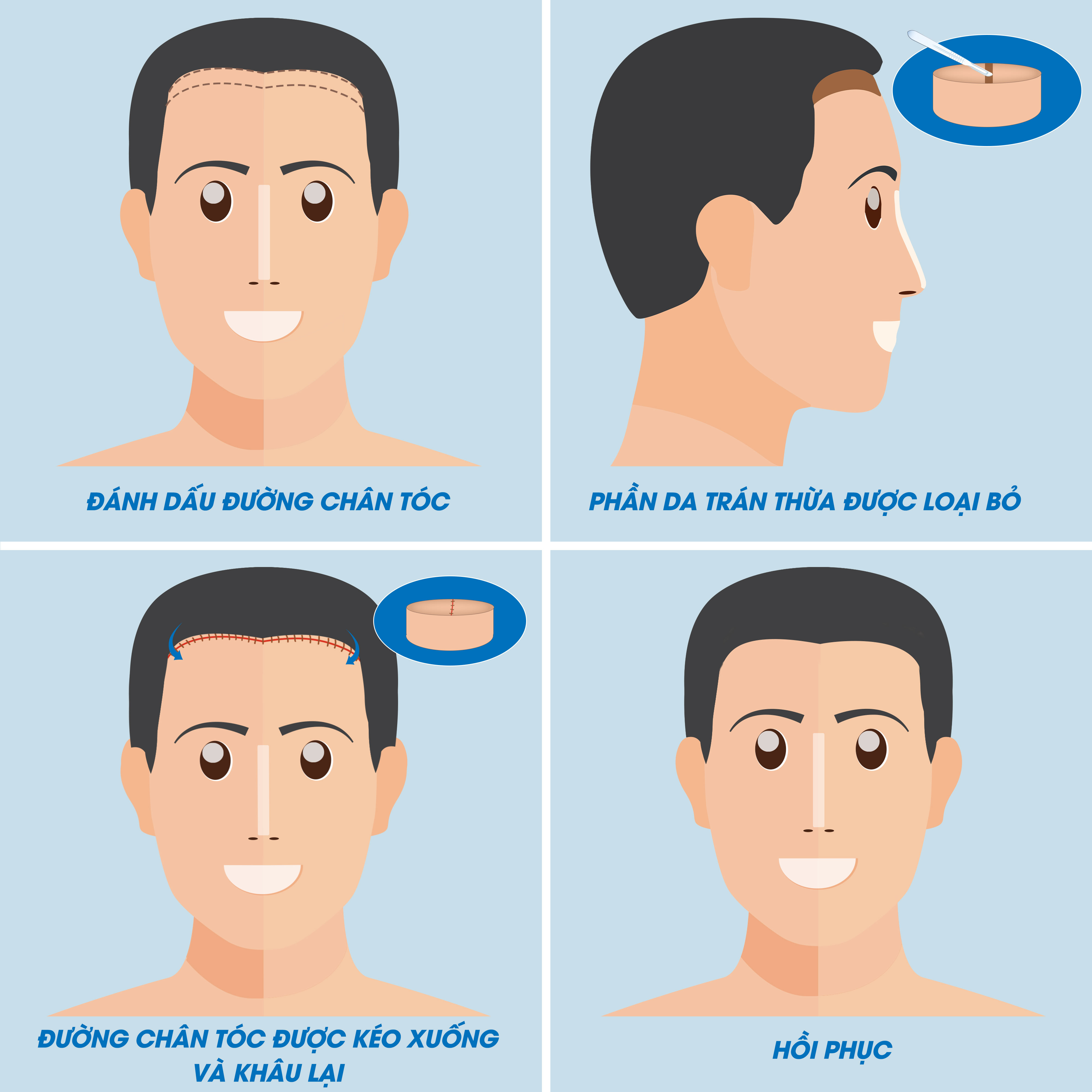 Ngoài ra, đối với những trường hợp đường chân tóc bị lùi cao do rụng tóc, phẫu thuật này cũng đóng vai trò quan trọng trong việc trẻ hóa nét mặt tổng thể của bệnh nhân.