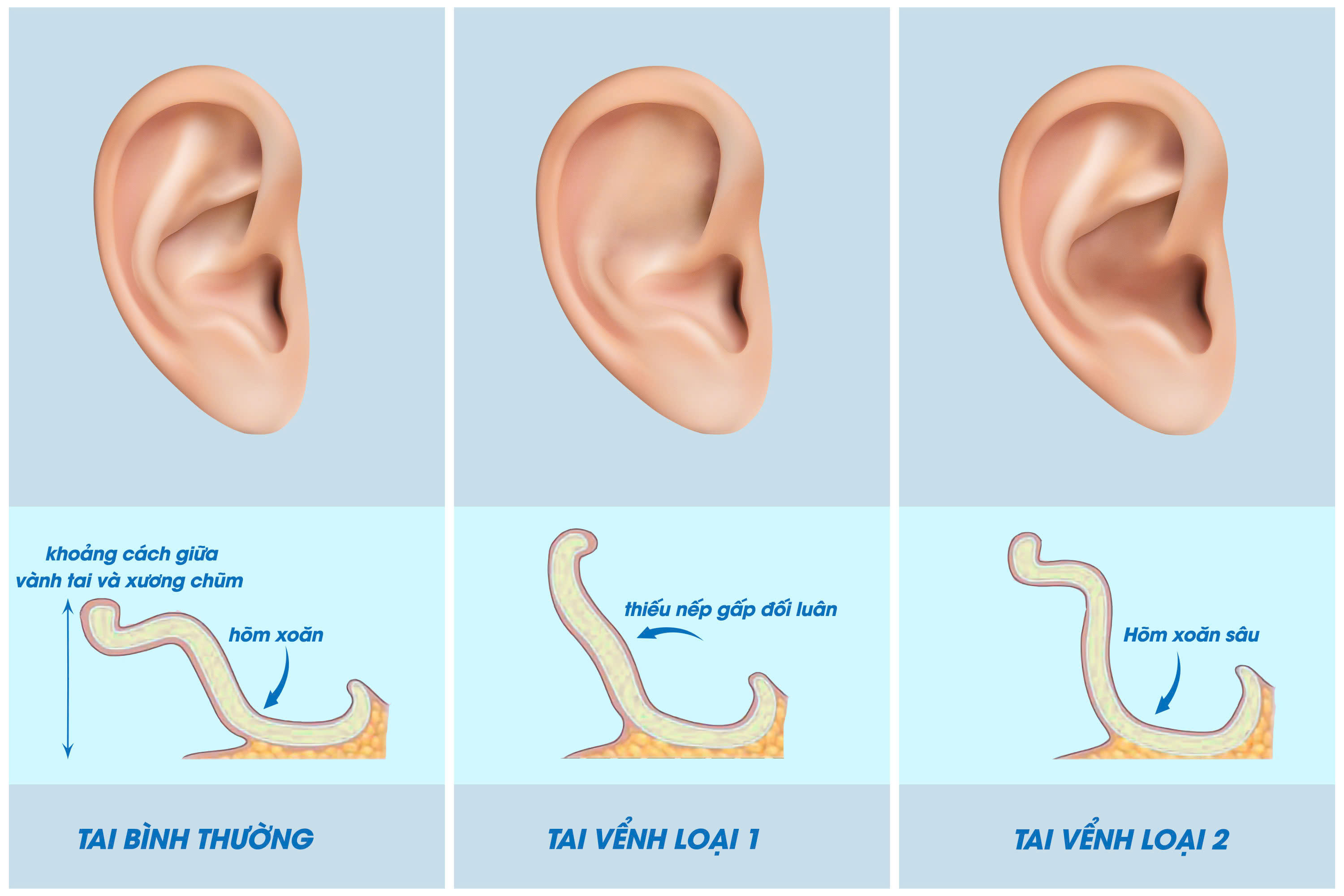 So sánh giữa các dạng tai vểnh và tai bình thường