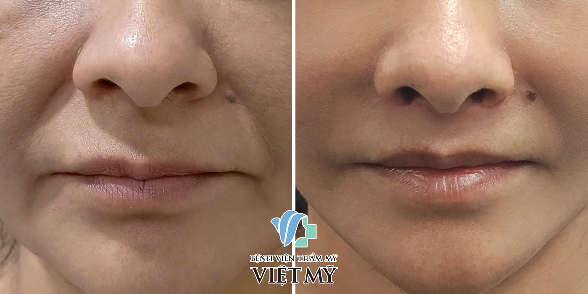 Hình ảnh trước và sau khi khách hàng nâng cơ táo và tạo hình nhân trung sâu.