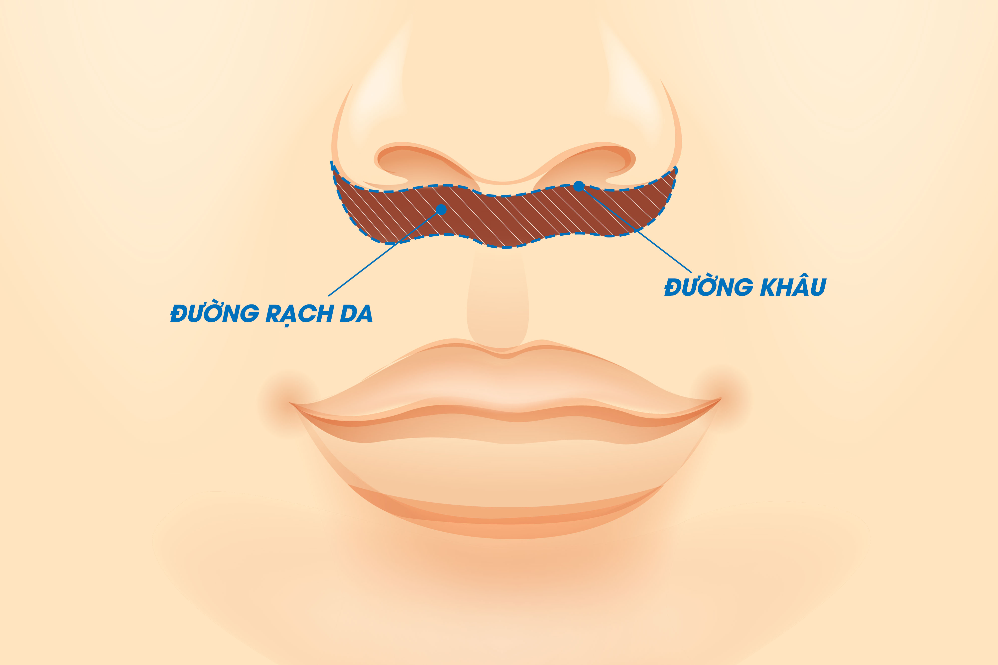 Vị trí đường mổ và rạch da trong phẫu thuật làm ngắn nhân trung